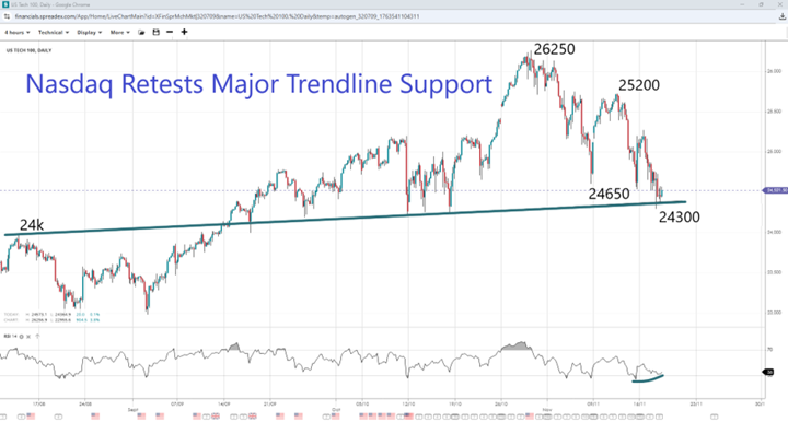 The Nasdaq is on edge ahead of key risk events around the middle of the week, as traders worry about tech valuations, if the Fed will cut, and what delayed US economic data will show.
