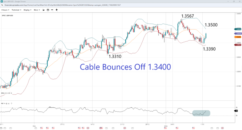 Despite the cable popping higher last Monday, it trended lower for the rest of the week amid dollar strength. The greenback was bolstered as , including the situation in Venezuela and the lack of progress toward ending the war in Ukraine. Treasury yields also rose after the first Fed speaker of the new year offered his view on policy. FOMC voter Tom Barkin said he expected the economy to accelerate this year, which would make it less likely that the Fed will ease policy, with the earlier in the week. The next major data point that could influence the Fed's outlook is Tuesday's release of the December CPI, with analyst consensus that the core inflation rate will increase to 2.7% from 2.6% in November. The headline rate, meanwhile, is expected to stay unchanged at 2.7%. A day later, PPI figures will be released, with October and November data expected simultaneously due to the government shutdown. The November PPI is projected at a monthly rate of 0.3%, unchanged from September.