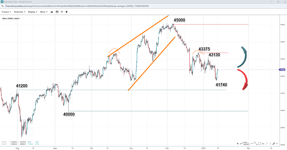 Overall, companies in the S&P 500 are expected to report a 10% increase in profits for the last quarter, setting a relatively high bar for current valuations. The earnings season kicks off with some of the US’ major banks, with investors keen to understand the impact of the Fed's 100 basis point rate cuts over the past year on the economy. Analysts believe that the market could receive some positive news as due to increased dealmaking and trading activity in the latter part of last year. That is on top of a steeper yield curve, which is expected to have provided support for the banks. Typically, banks perform better when interest rates are higher, so investors will be particularly interested in any insights into the Fed's future rate path, as well as an assessment of credit quality to determine if Americans are facing increased financial pressure.​