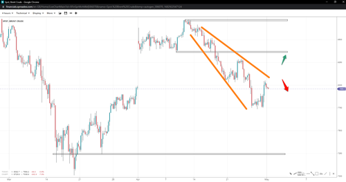 Brent oil prices have reserved at the $77.50 mark and are trading just under $80, which may determine whether the short-term uptrend continues. Price action seems consistent with a flag pattern, and if bearishness persists, it could drop toward $72.50 if $75.50 wanes. A break above the round resistance can potentially send prices as high as $87.20 if $83.50 gives way to bulls.
