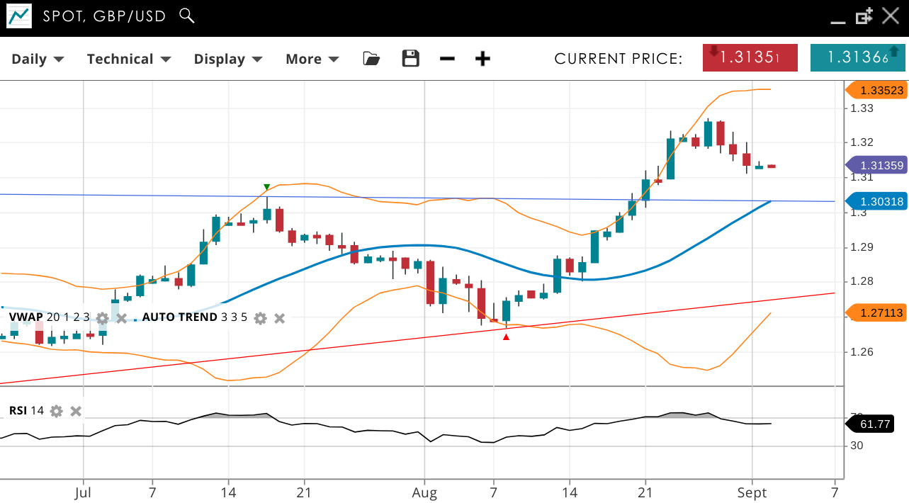 NOTE: These charts use the ‘Pro Trading Tools’ available on the SpreadEx trading platform. To use them, log in to your and click ‘Technical’ from the menu on any chart.