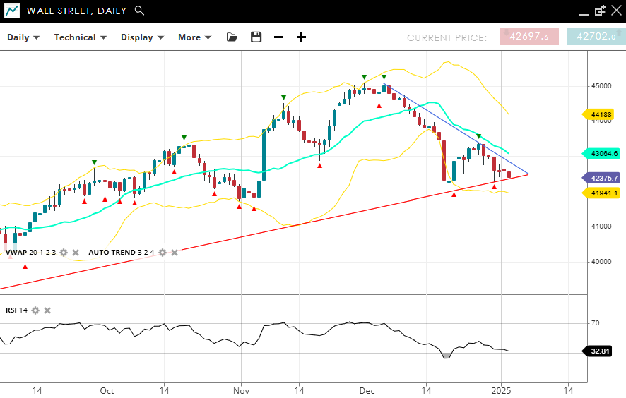 | Wall Street | Bullish | Correction | 42,375 | 43,064 | 41,941 | 44,188 | 32 |