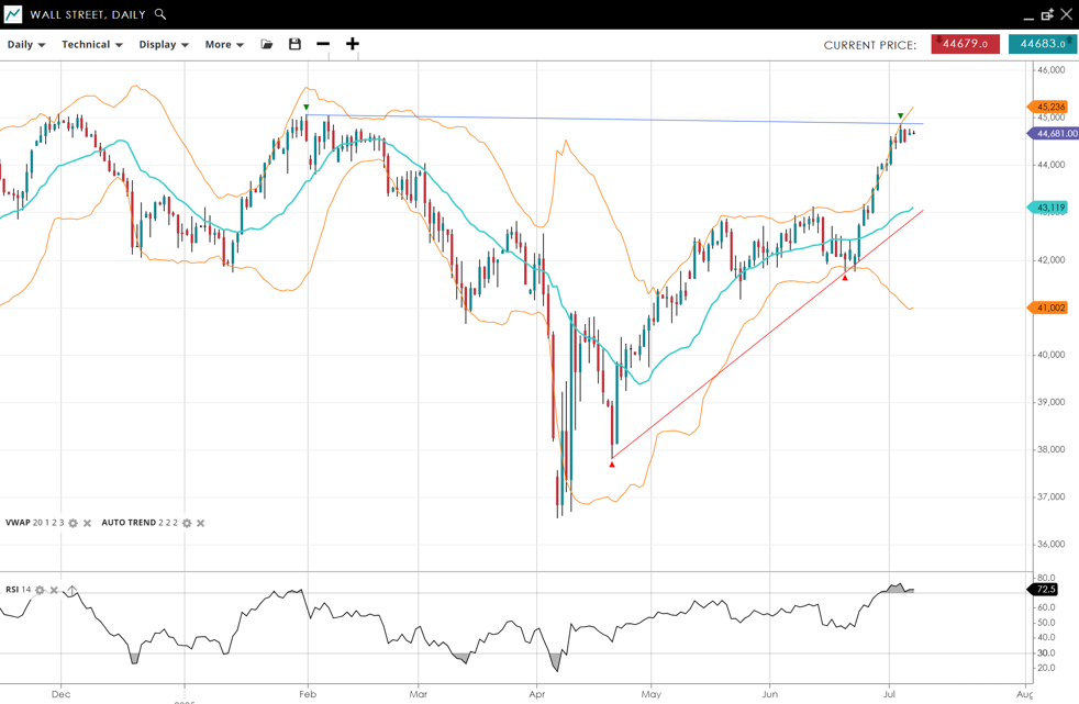 | Wall Street | Bullish | Impulsive | 44,681 | 43,119 | 41,002 | 45,236 | 72 |