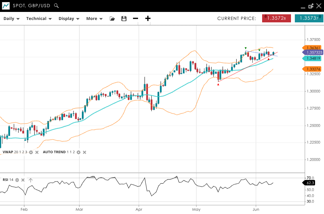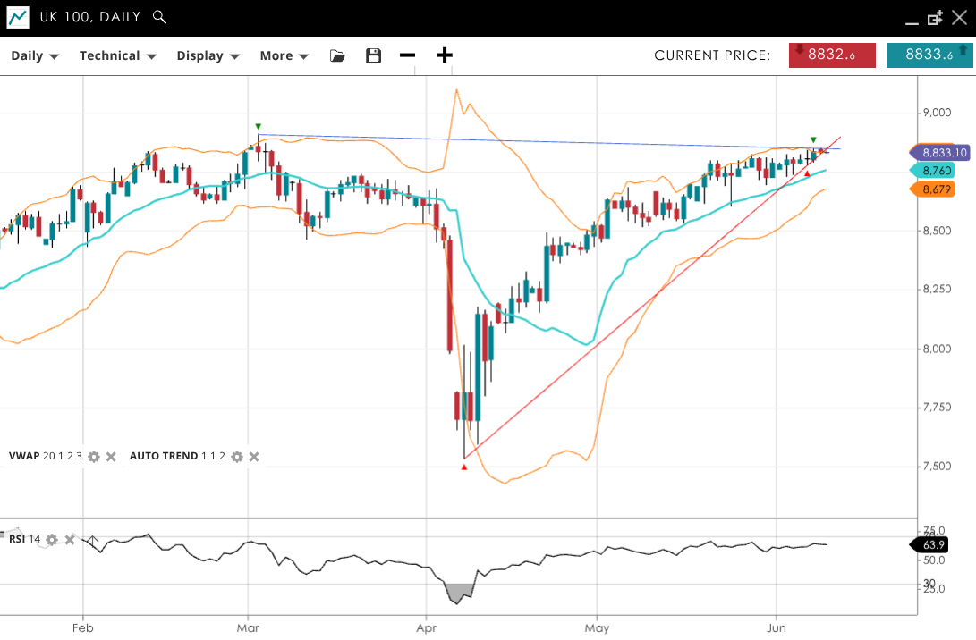 NOTE: These charts use the ‘Pro Trading Tools’ available on the SpreadEx trading platform. To use them, log in to your and click ‘Technical’ from the menu on any chart.
