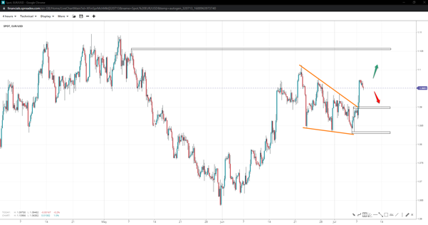 The EUR/USD pair appears in both a wedge and a flag pattern, depending on whether bulls can take out the top at $1.1012 before sliding to a fresh regional low under $1.0834. The former might accelerate prices to $1.1055, whereas losing $1.09 will increase the chances of getting a flag.