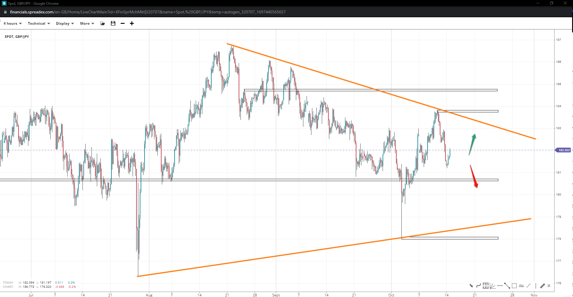 Despite trading bullishly in the short term, GBP/JPY remains at risk of prolonged consolidations having printed higher lows and lower highs, resembling a triangle. Losing the closeby levels at either ¥180.65 or ¥183.85 to extend to ¥184.70 will unlikely shift chances, but the break of the ¥185 might do.