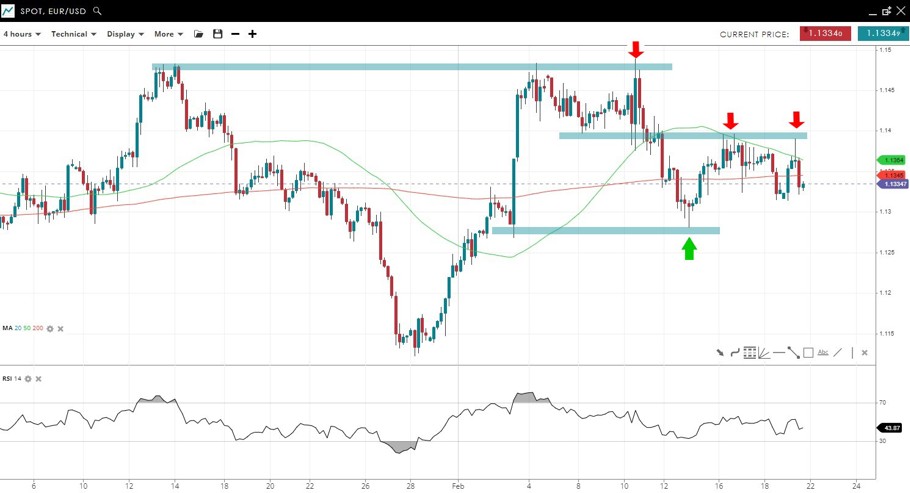 Price rebounded off 1.13 but has twice failed to move back over 1.14, having failed 3 times at 1.15.