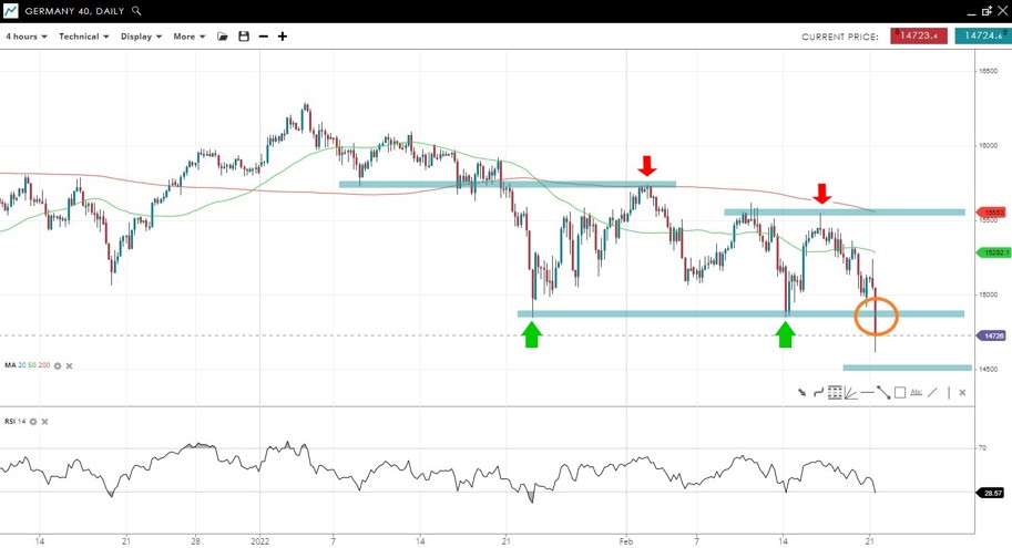 Price held the 14,850 support once but it has now broken down after 15,600 resistance held.