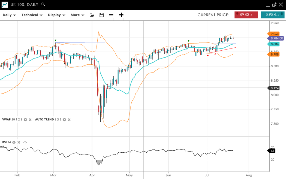 NOTE: These charts use the ‘Pro Trading Tools’ available on the SpreadEx trading platform. To use them, log in to your and click ‘Technical’ from the menu on any chart.