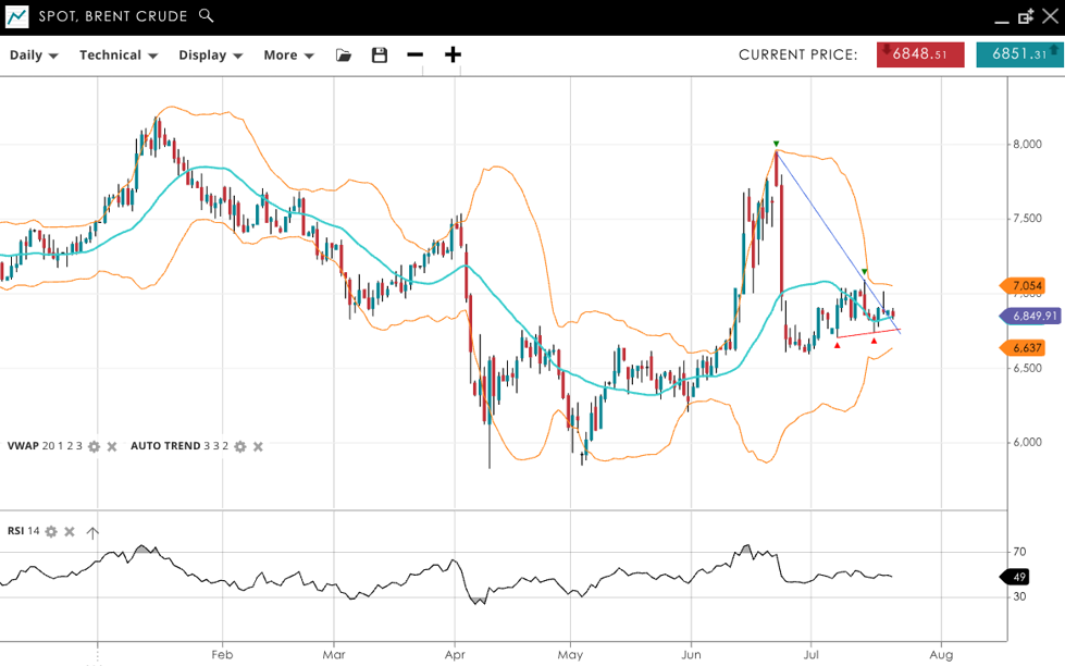 | Brent Crude | Neutral | Range | 6,849 | 6,847 | 6,637 | 7,054 | 49 |