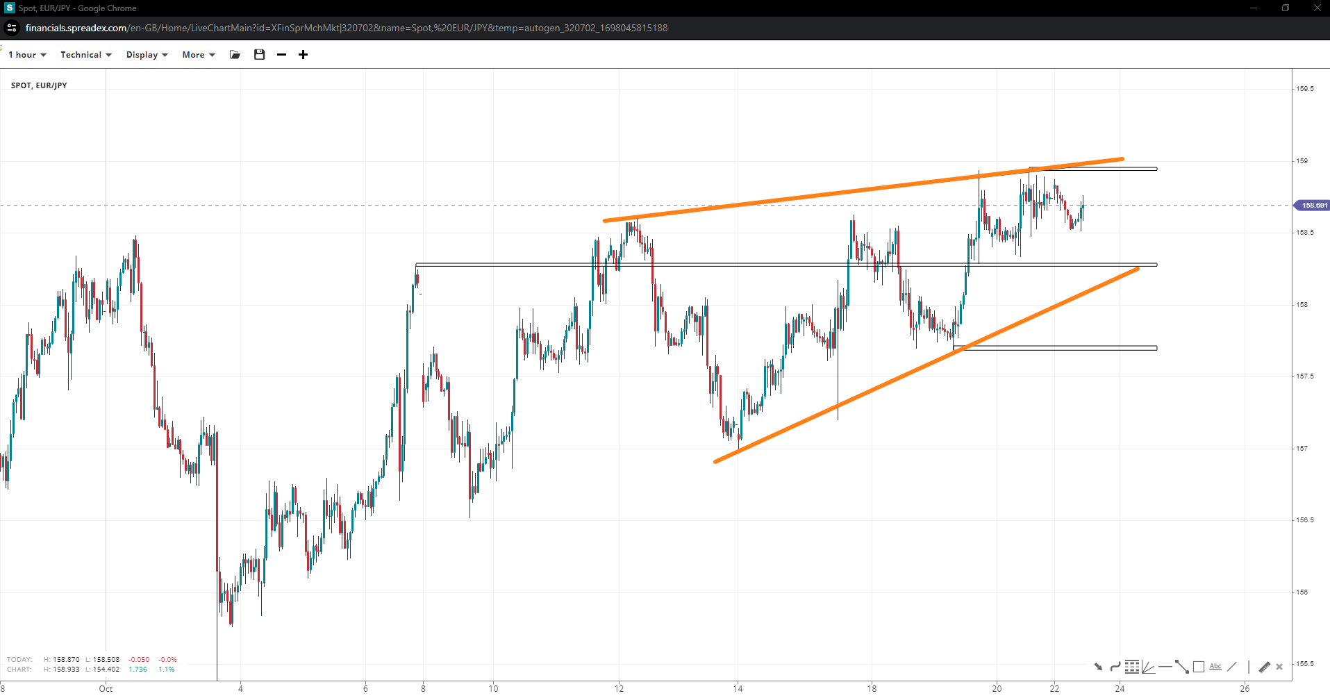The EUR/JPY pair may have ended a wedge pattern at ¥158.93 and turned to ¥158.25 before testing the second trough at ¥157.68. A rally toward ¥159.00 could be seen but is unlikely to offer a continuation unless bulls reclaim ¥159.50.