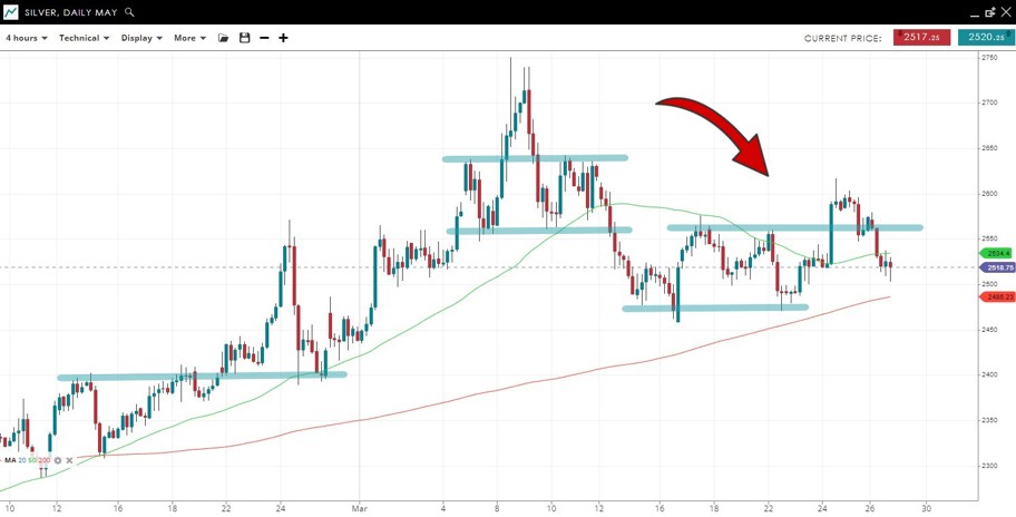 The gold price is currently supported by the 200 SMA but a failure to hold above the recent high at 1950 suggests a possible break lower inline with the sell-off from the near-record high.