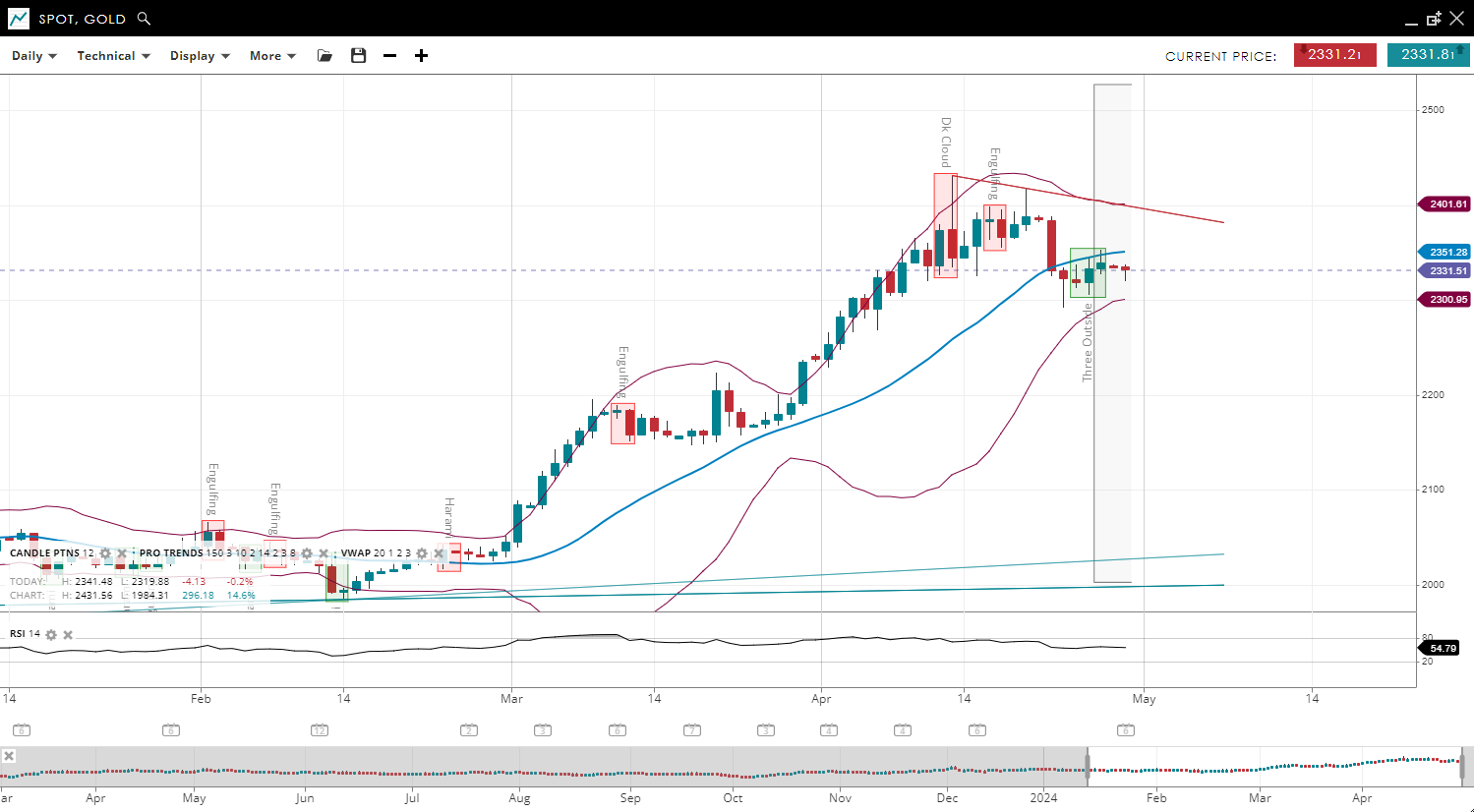 | Gold | Bullish | Impulsive | 2,364 | 2,335 | 2,244 | 2,426 | 63 |