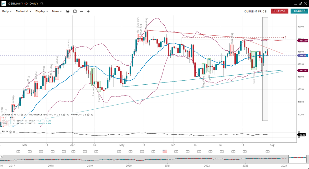 | Germany 40 | Bullish | Consolidation | 18430 | 18430 | 18129 | 18722 | 50 |