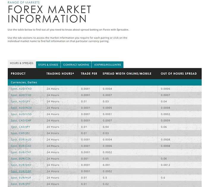 If you don't have a Spreadex account, go to our Range of Markets page, then select Market Information for the sector you require (e.g. Indices, Shares, Forex, Commodities etc.).