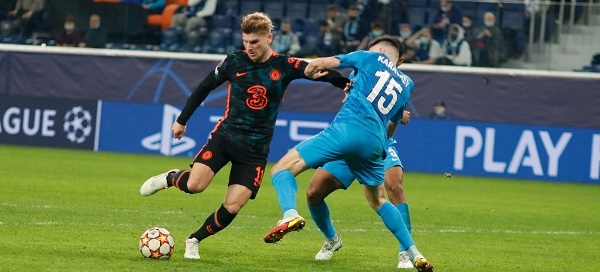 With Manchester City, Liverpool and Manchester United all confirmed as group winners, meaning they will draw one of the runners-up in the knockouts, it was down to Champions League holders Chelsea last night to join them. Going into injury time in a ding dong battle at Zenit St Petersberg the Blues found themselves 3-2 up and set to top Group H, but there was one more twist in this game, and a cracker from Magomed Ozdoev four minutes into added time made it 3-3 and left Juventus, 1-0 winners against Malmo, atop the group. Chelsea had taken an early lead through Timo Werner, fallen behind by half-time thanks to two goals in three minutes from Claudinho and Sardar Azmoun, gone ahead again through goals from Romelu Lukaku and a second from Werner before Ozdoev’s late stunner gave both sides a point.