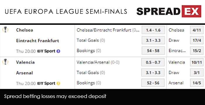 For Chelsea, it’s a home visit from Eintracht Frankfurt, at 8pm on BT Sport 3. The 1st leg at the Commerzbank-Arena ended in a 1-1 draw, Luka Jovic’s 23rd minute opener cancelled out just before the break by Pedro. That does mean the Blues have the advantage heading into Thursday night, clinging onto a potentially decisive away goal. Last weekend’s 3-0 win over Watford was the club’s first Premier League victory since the start of April and, combined with the results of those below them, helped them secure a place in the Champions League next season. Frankfurt, meanwhile, are without a Bundesliga win in their last 4 games, though they’ve so far kept their place in the top 4 thanks to their superior goal difference. Eden Hazard – who may be playing his final game at Stamford Bridge – sits at a Super Mega PGM of 51-59, more than double that of Jovic at 23-28. That’s perhaps because the Blues are yet to lose in Europe this season, a stat that leaves them with a Chelsea/Eintracht Frankfurt Goal Supremacy spread of 1.35-1.55, alongside a Total Goals spread of 3.1-3.3. As for the Gunners, the semi-final 2nd leg against Valencia – at 8pm on BT Sport 2 – is theirs to blow. Ominously, Arsenal are in the Barcelona/Ajax position; up 3-1 after bouncing back from the Spanish side’s early opener at the Emirates. While Unai Emery’s lads picked up 3 wins in Europe in April, they’ve been woeful domestically, lossing to Everton, Crystal Palace, Wolves and Leicester, before starting May with a 1-1 draw against previous relegation candidates Brighton. Admittedly Valencia weren’t much better last month, though they did at least hammer Huesca 6-2 at the weekend. Though Arsenal have Pierre-Emerick Aubameyang at a solid Super Mega PGM of 31-37, the Gabonese forward is actually pipped by Rodrigo Moreno, who sits at 35-41. That’s a worry for the Gunners, whose poor form – especially away from home – puts them on the back foot as they travel to Spain, with Spreadex offering a Valencia/Arsenal Goal Supremacy spread of 0.5-0.7/