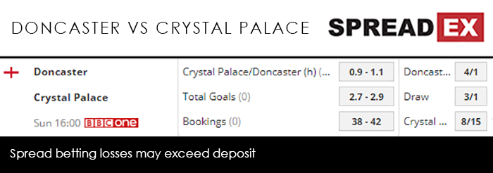 Finally, Crystal Palace look to dump out Doncaster at 4pm on BBC One. Lurking at the bottom end of League One’s play-off zone, the Rovers are yet to face top-tier competition in the FA Cup this season. That, in theory at least, changes on Sunday, when they face a Palace who, league troubles aside, did beat Tottenham to get here. That confidence-booster should see the visitors triumph this weekend, with Spreadex offering a Crystal Palace/Doncaster (h) Goal Supremacy spread of 0.9-1.1.