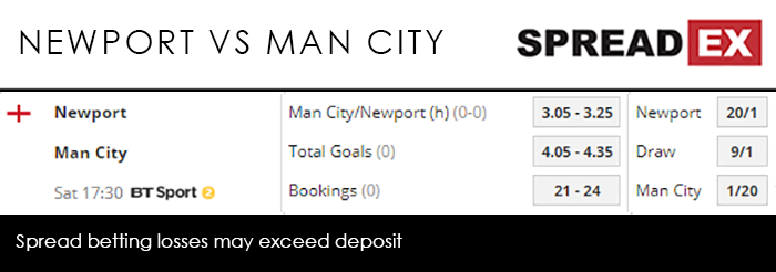Securing a big-time visit from Man City, Newport could be in for an absolute mauling at 5.30pm on BT Sport 2. The lowest ranked side left in the competition, the Exiles have been on a tear, besting Leicester and Middlesbrough in the last 2 rounds. City are another proposition altogether, however, and given the league-leaders have scored 12 goals in their 2 Cup appearances the hosts should brace themselves. Spreadex are offering a Man City/Newport (h) Goal Supremacy spread of 3.05-3.25 alongside a Total Goals spread of 4.05-4.35.